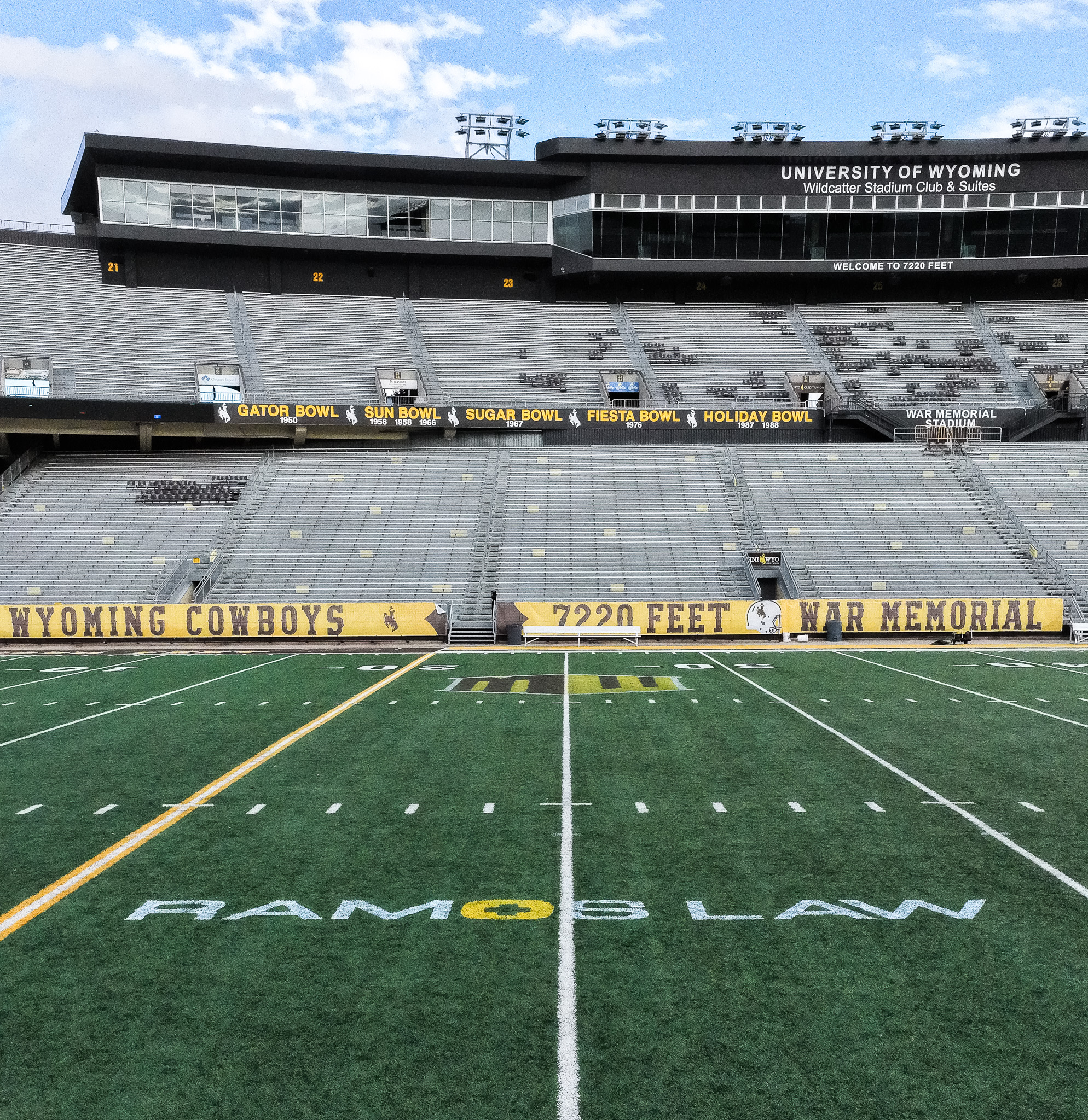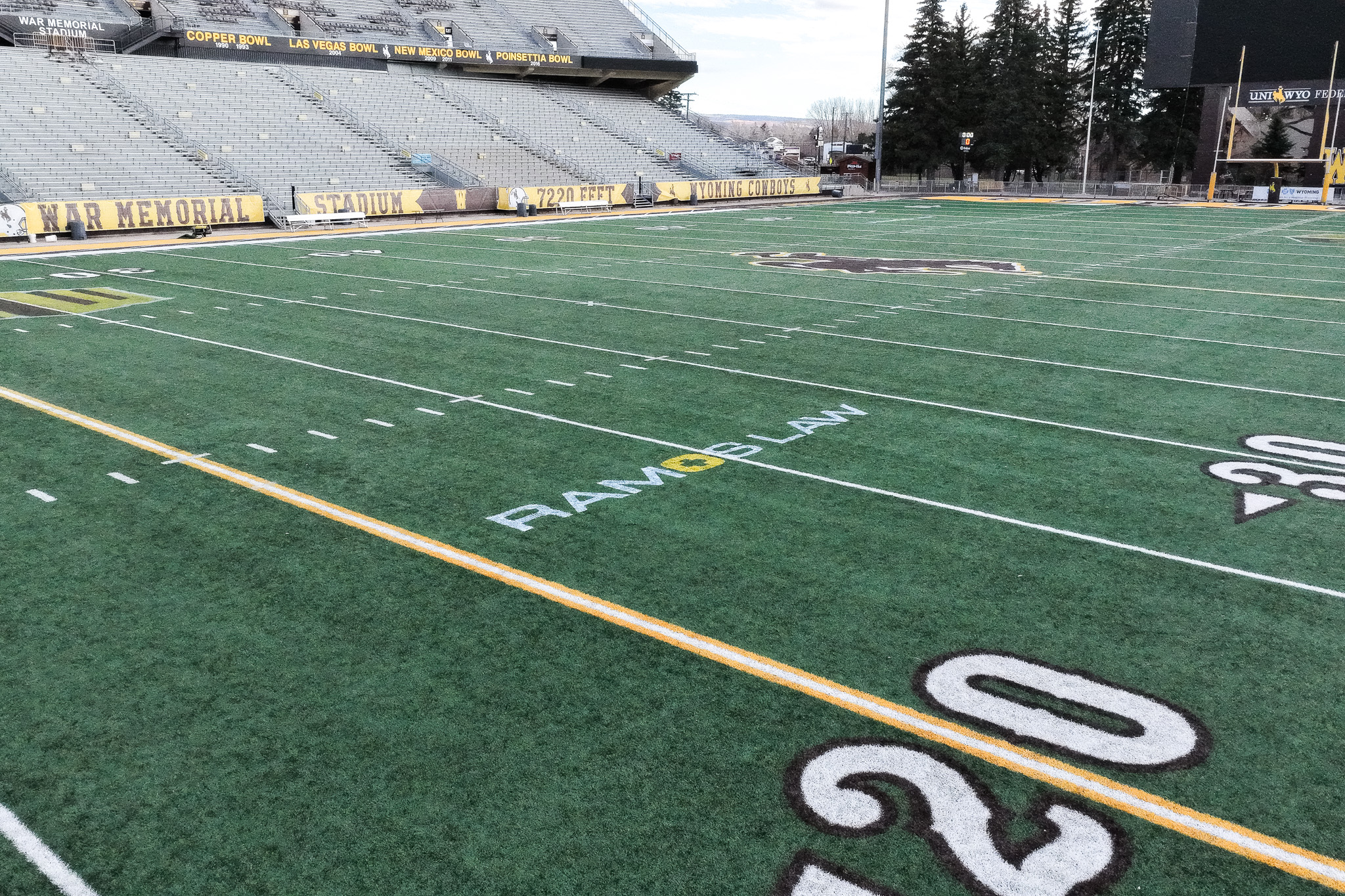LARAMIE, Wyo. – Wyoming Athletics and Wyoming Sports Properties announced today a historic partnership designating Ramos Law as the first ever on-field logo sponsor in the 75-year history of Wyoming’s War Memorial Stadium.